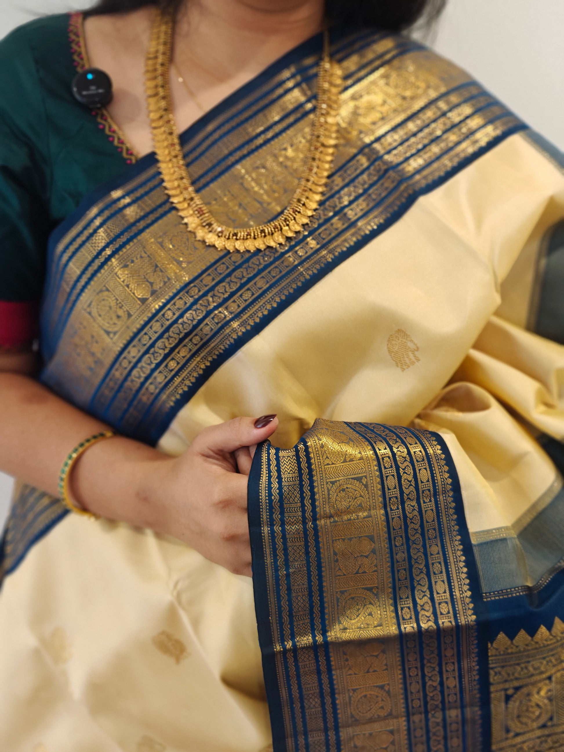 Cream and Blue Korvai Kanjivaram