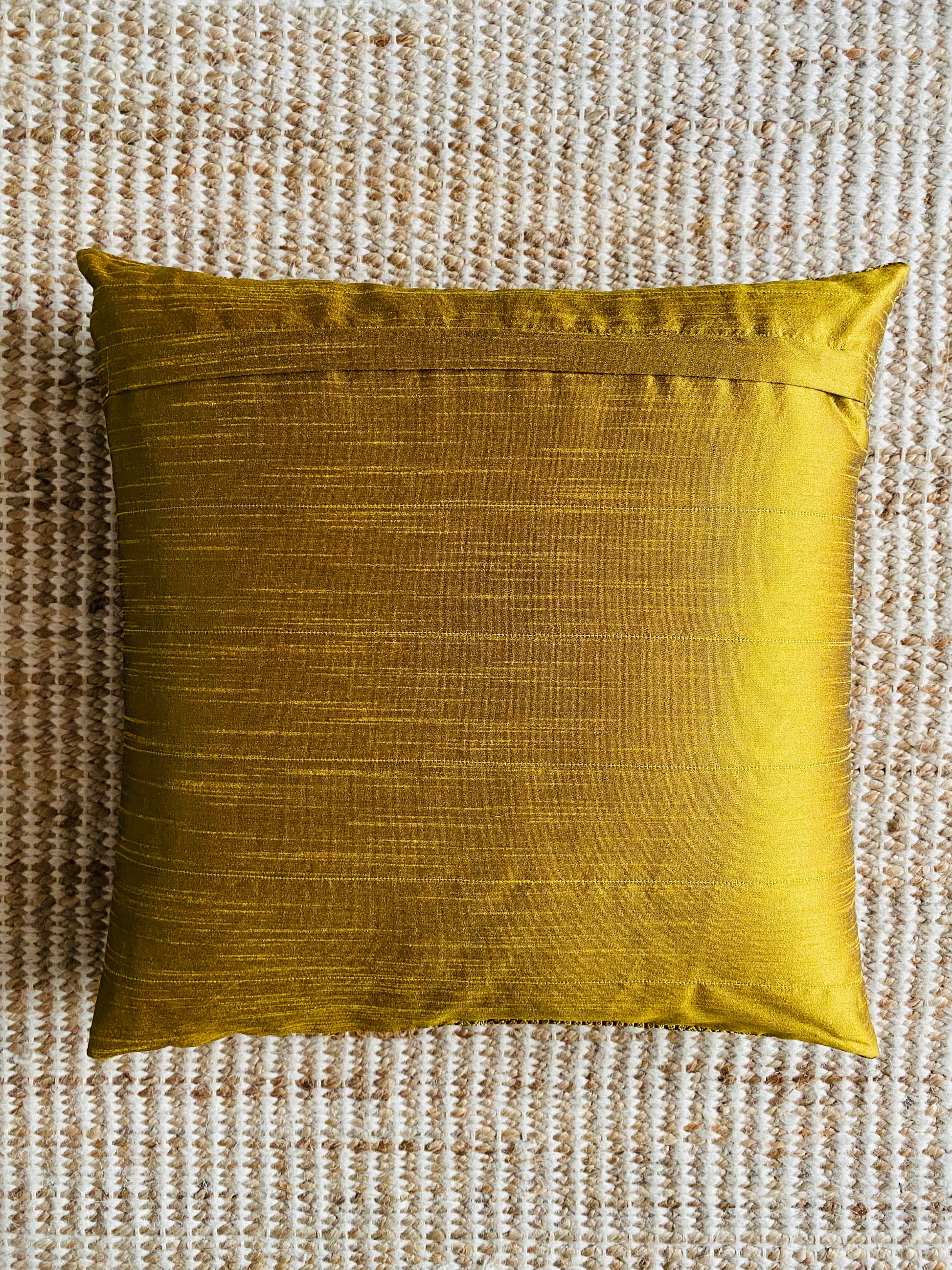 Elevate your home decor with the opulent Golden Khunn Pillars Silk Cushion Covers. In warm gold hues, these 16x16 covers feature a unique striped pattern created from different weave patterns of Khunn fabric. The top-stitching and lining ensure a luxurious finish, while the coordinating plain back and zipper provide convenience.