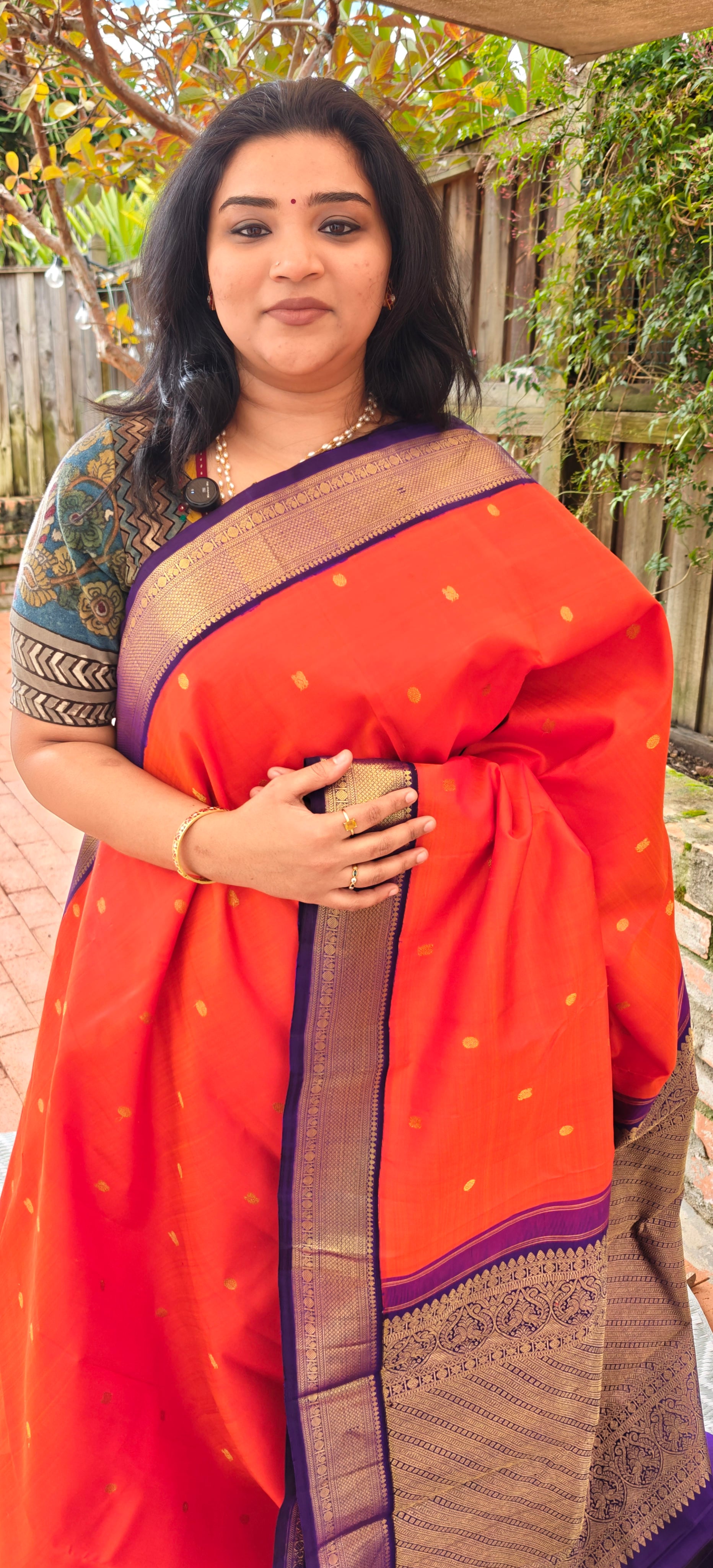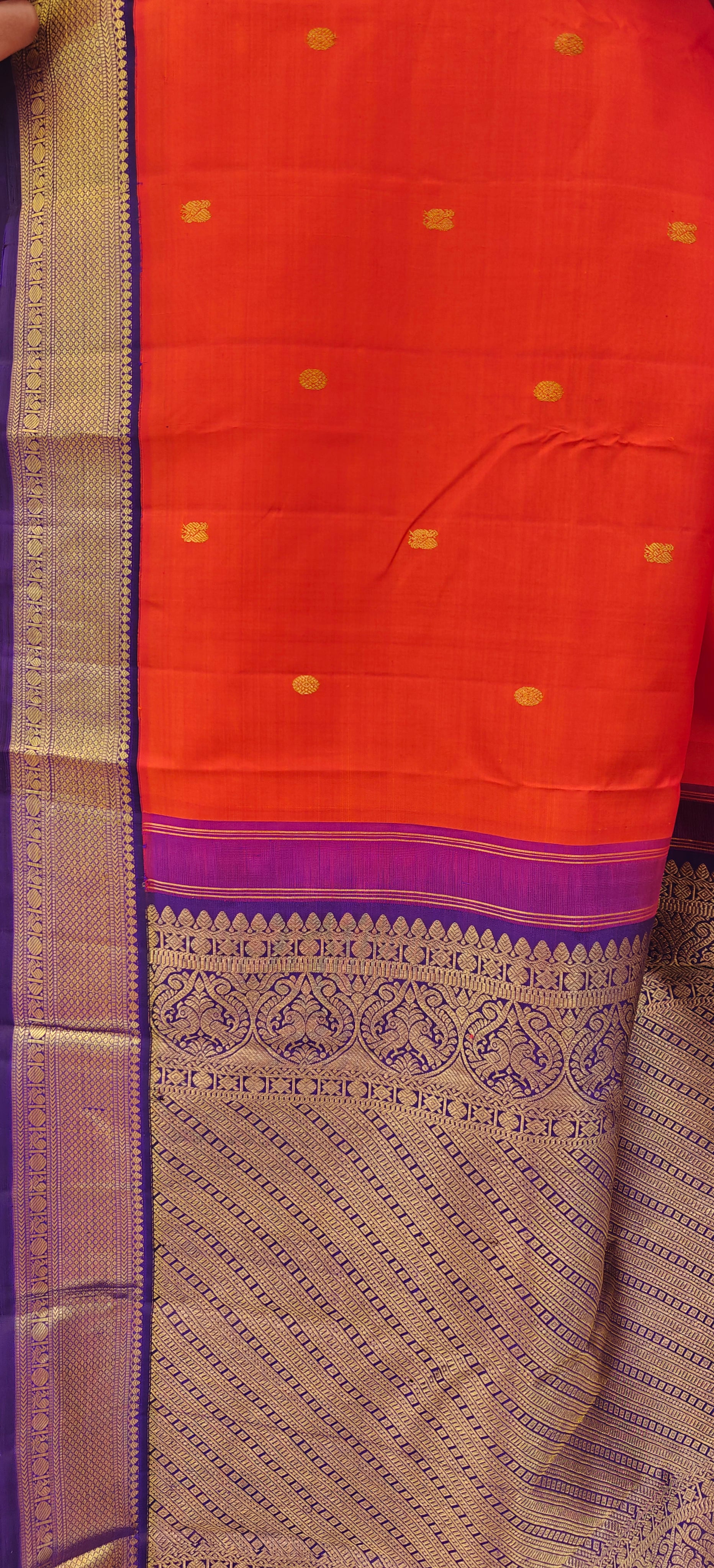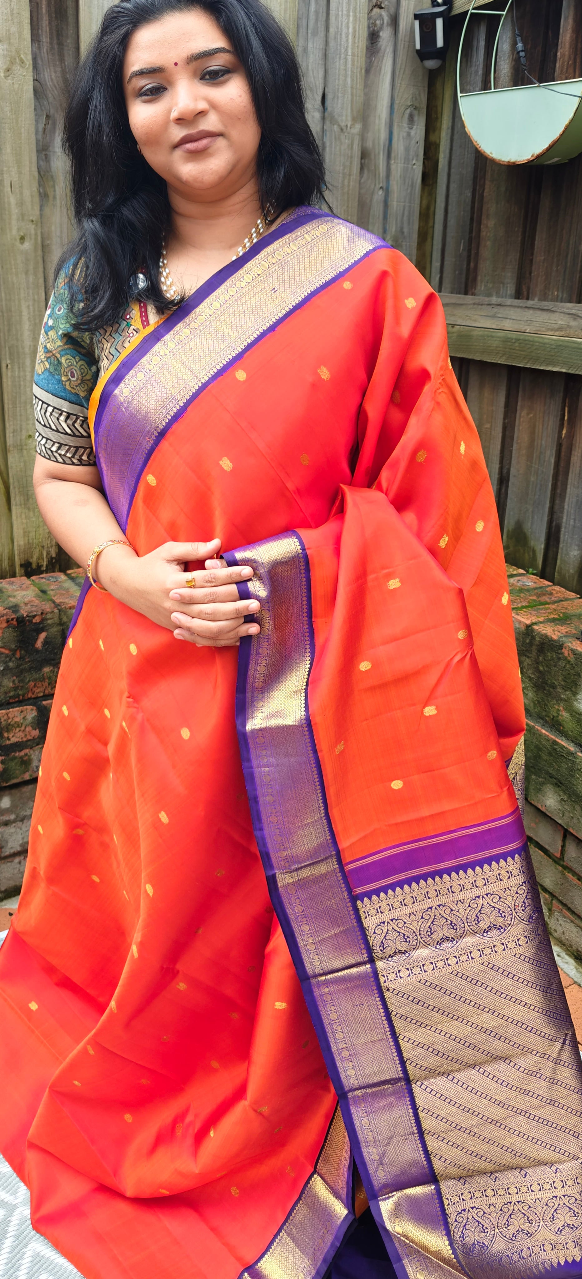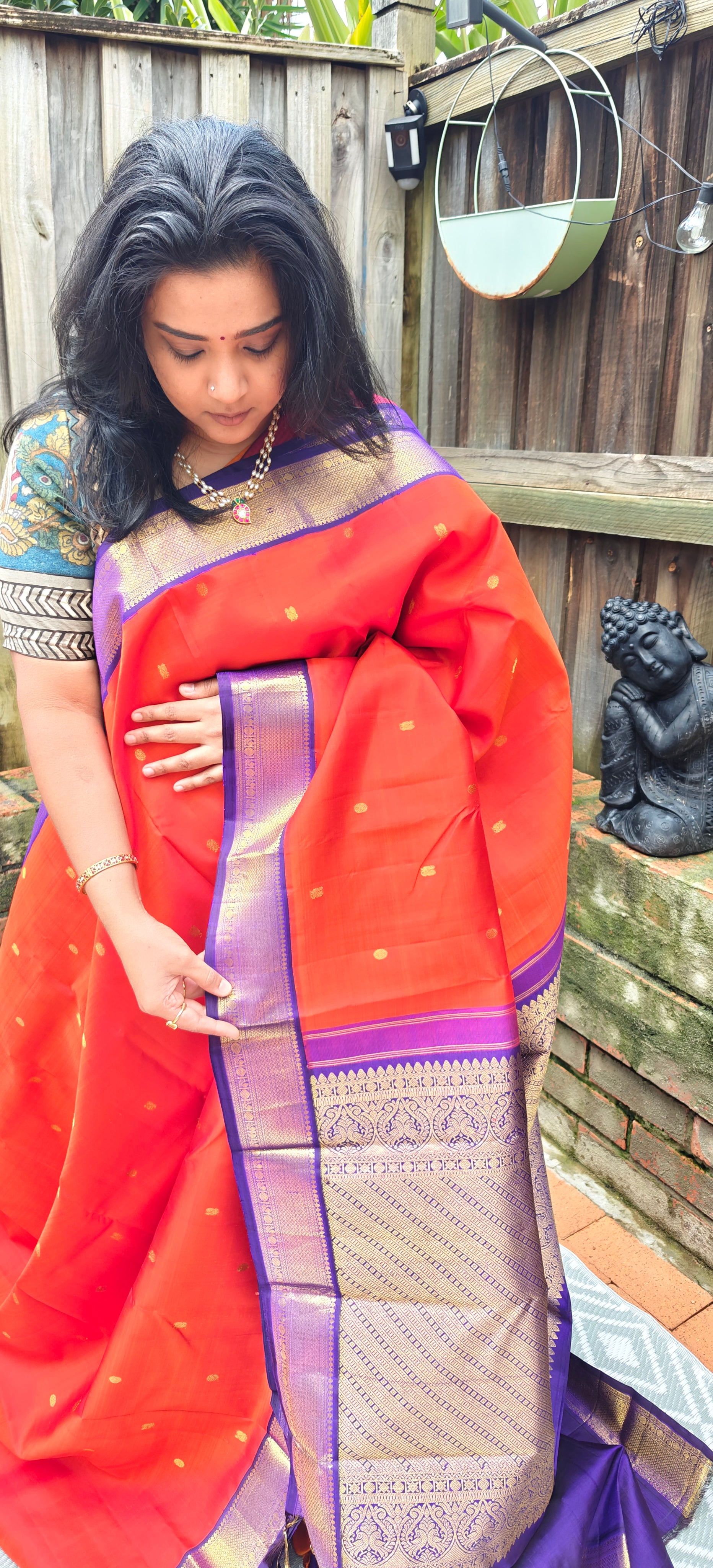 Orange and Violet korvai -Kanjivaram Silk Saree